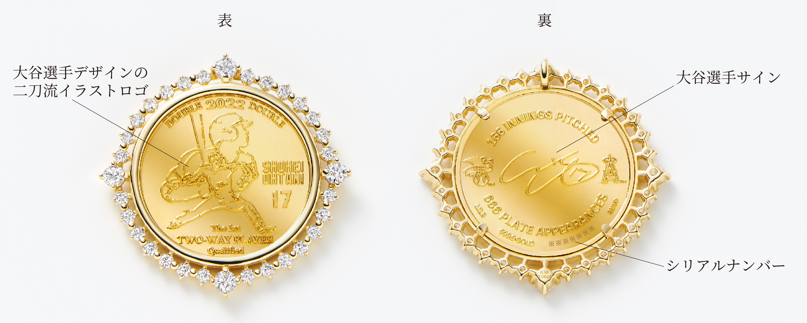 大谷選手の偉業として飾って愉しみ、また身につけて愉しいジュエリーとして二刀流でお楽しみいただけます。